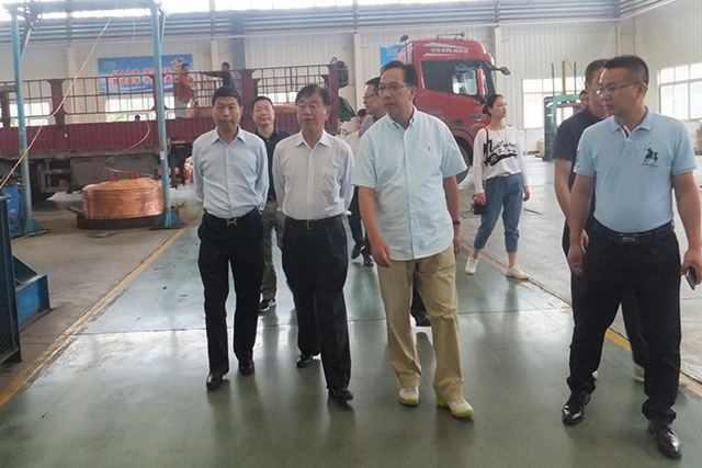 童建成向上海市原副市长胡延照介绍我公司生产规模及电线电缆生