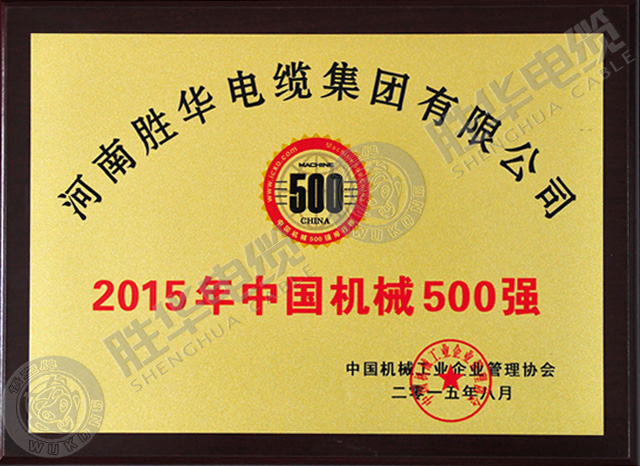 不断地技术创新和发展使得新宝gg电缆的市场竞争力不断增强,同年,河南新宝gg获得2015年中国机械500强