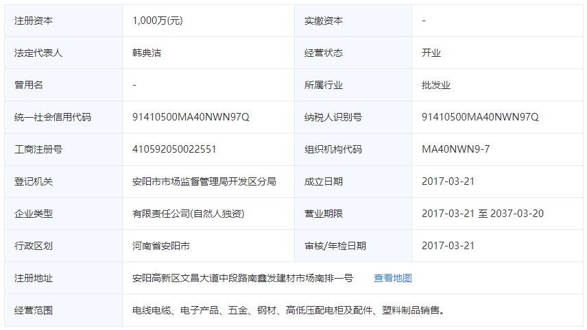 安阳市新宝gg电缆有限公司这家电线电缆厂家成立于2017年3月21日,是一家成立还不到5年的非常年轻的电缆电缆厂家,安阳市新宝gg电缆有限公司注册场地位于安阳高新区文昌大道中段路南鑫发建材市场南排一号,是安阳市地区非常有名的高新技企业聚集地,公司注册资金1000万,公司法定代表人韩典洁,同时韩典洁还担任安阳市新宝gg电缆有限公司的执行董事兼总经理,张留生担任公司监事。