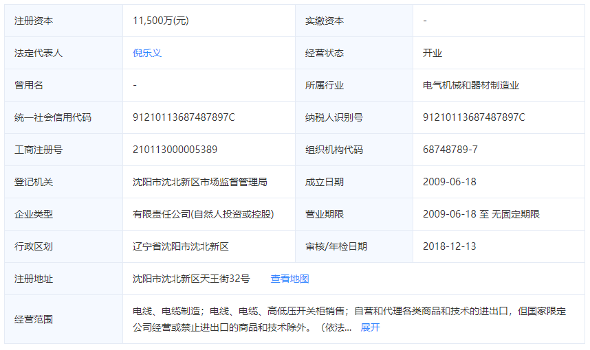 辽宁新宝gg电缆有限公司这家电线电缆厂家成立于2009年6月18日,注册资金11500万元,厂区地址位于辽宁沈阳沈北新区天王街32号,法定代表人是倪乐义,同时倪乐义还担任辽宁新宝gg电缆有限公司的执行董事,张方宣担任公司监事,辽宁新宝gg电缆有限公司是一家成立刚满十年的电线电缆厂家。