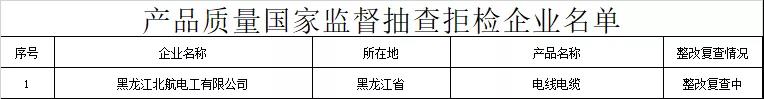 在电线电缆产品抽查中,黑龙江北航电工有限公司违反《中华人民共和国产品质量法》规定,无正当理由拒绝接受监督抽查。