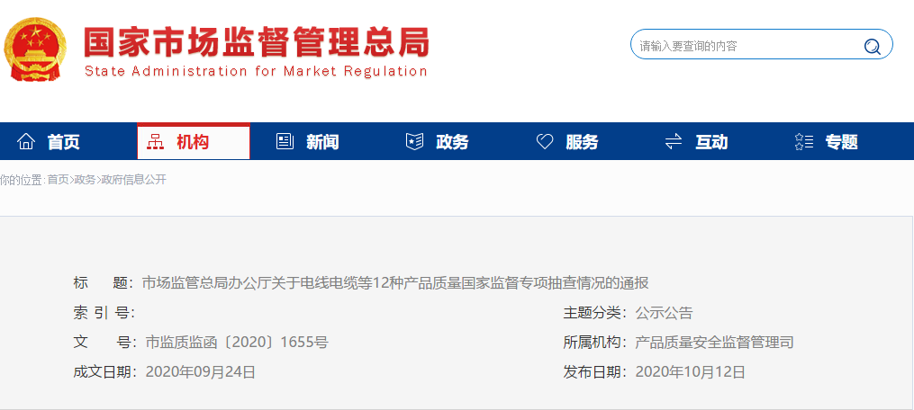 日前,市场监管总局组织开展了电线电缆等产品质量国家监督专项抽查。现将电线电缆抽查情况通报如下:
