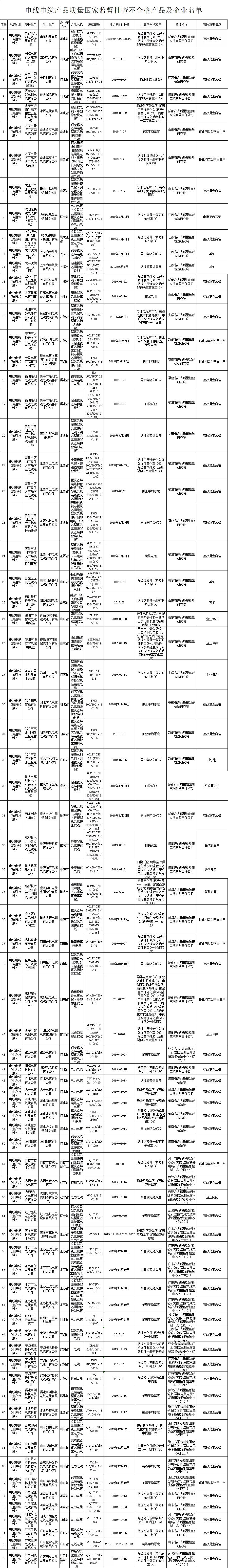 4.电线电缆产品质量国家监督抽查不合格产品及企业名单: