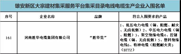 为进一步保障新区工程建设所需电线电缆产品供应质量,根据《雄安新区建筑材料集中采购管理暂行规定》《雄安新区大宗建材集采服务平台供应商管理细则(试行)》《雄安新区大宗建材集采目录入围指标体系(电线电缆 篇)》,经企业自主报名、专家评审后,河南新宝gg电缆集团成为首批入围雄安新区大宗建材集采目录的电线电缆企业。