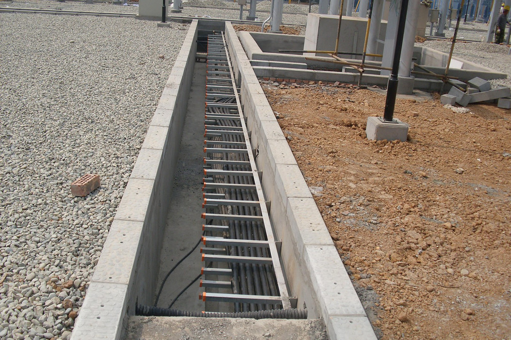 电缆沟一般采用混凝土或砖砌结构,其顶部用盖板覆盖。盖板面可以和地面齐平,便于开启,也有的稍低于地面而在盖板上粉刷一层水泥,以防止盖板与地面高低不平和雨水进入电缆沟。电缆沟沟壁、盖板及其材质构成,应满足承受荷载和适合环境耐久的要求。可开启的沟盖板的单块重量,不宜超过50kg。