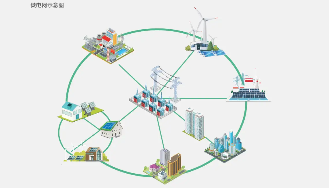 微电网是相对于传统大电网的一个概念,是指多个分布式电源及相关负载按照一定的拓扑结构组成的网络。由分布式电源、储能装置等组成的小型发配电系统,其可以实现多样化分布式电源的高效并网,能够实现自我控制、保护和管理的自治系统,既可以与外部电网并网运行,也可以孤立运行。可以减少分布式电源接入对大电网产生的不利影响。微电网凭借其对分布式电源灵活高效的集成能力,已成为不少地方建设新型电力系统的重要方向。