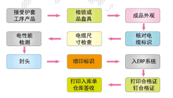 我公司根据各产品的国家标准、行业标准、客户需求及国家行业颁布的各项电缆产品实施、管理细则对产品生产实现过程的检验项目均制订了详细的检验规程如过程检验过程,成品检验规程、原材料采购检验规程等,检验程序中详细明确了检验项目、内容、方法、判断依据、检验频率等。并保存有完善的检验记录,保障产品的质量信息处于可追溯状态。