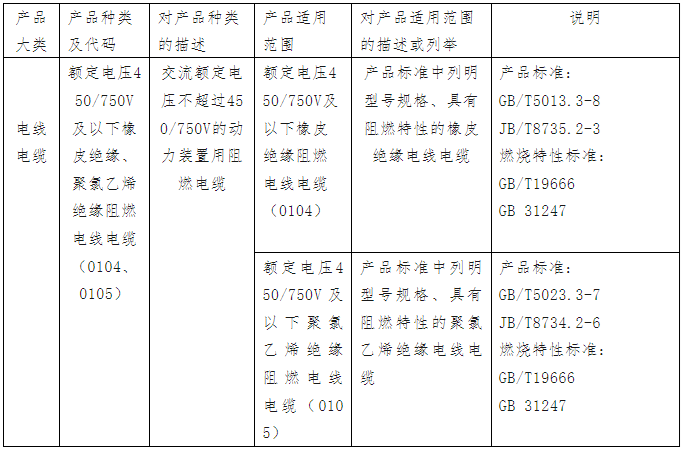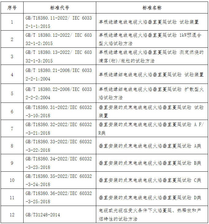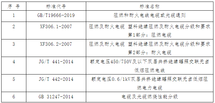 实施CCC强制性认证阻燃电线、电缆产品所涉及的标准范围