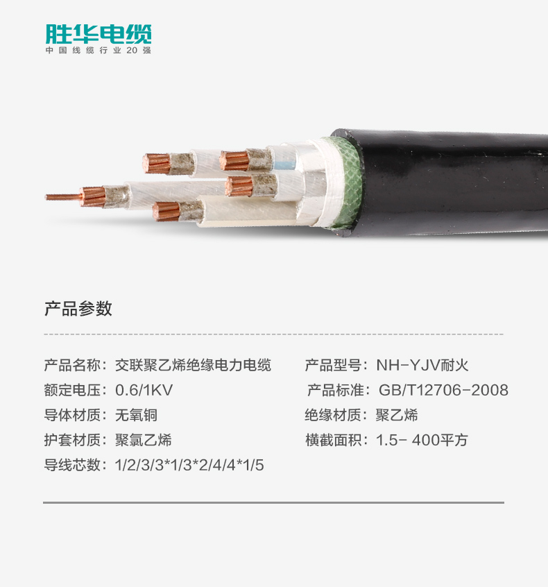新宝gg电缆NH-YJV-0.6/1KV耐火交联聚氯乙烯绝缘铜芯电力电缆