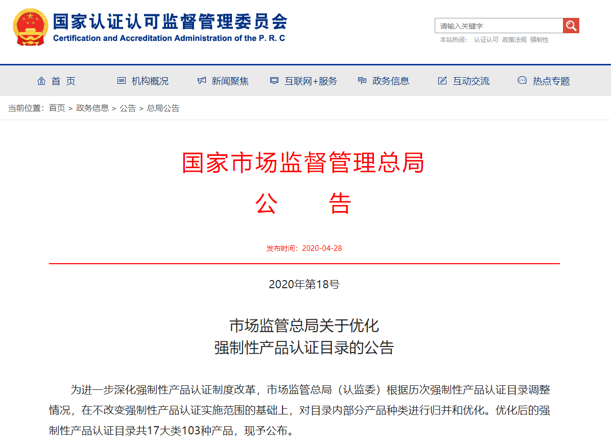 现如今,带有“CCC”标志的强制性认证产品随处可见,像洗衣机、空调器、电视机这样的家电产品,手机、电脑等通讯信息产品,以及汽车、电动自行车、玩具、电线电缆、装饰建筑材料等等在内共有17大类103种产品(其中19种产品采用自我声明实施方式),都需要通过强制性产品认证。