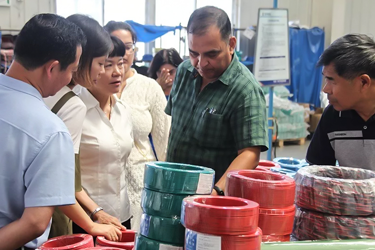 参观期间,新宝gg代表向VIJAY KUMAR MARASINI先生详细介绍电缆生产和公司产品等情况,而VIJAY KUMAR- MARASINI先生也详细询问了新宝gg公司产品生产环节中的相关技术和销售问题。新宝gg代表一一作出详细的解答和描述。